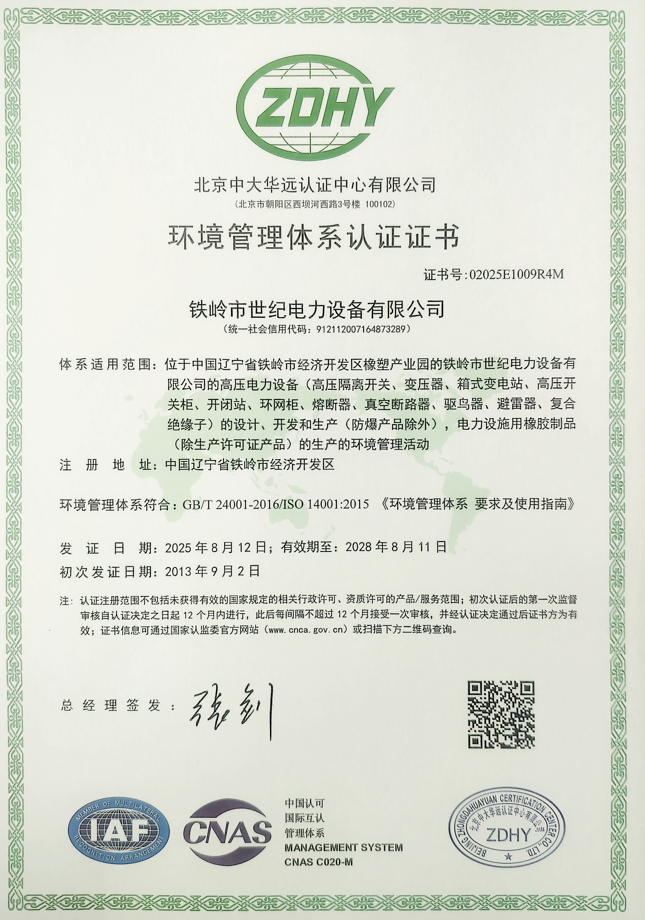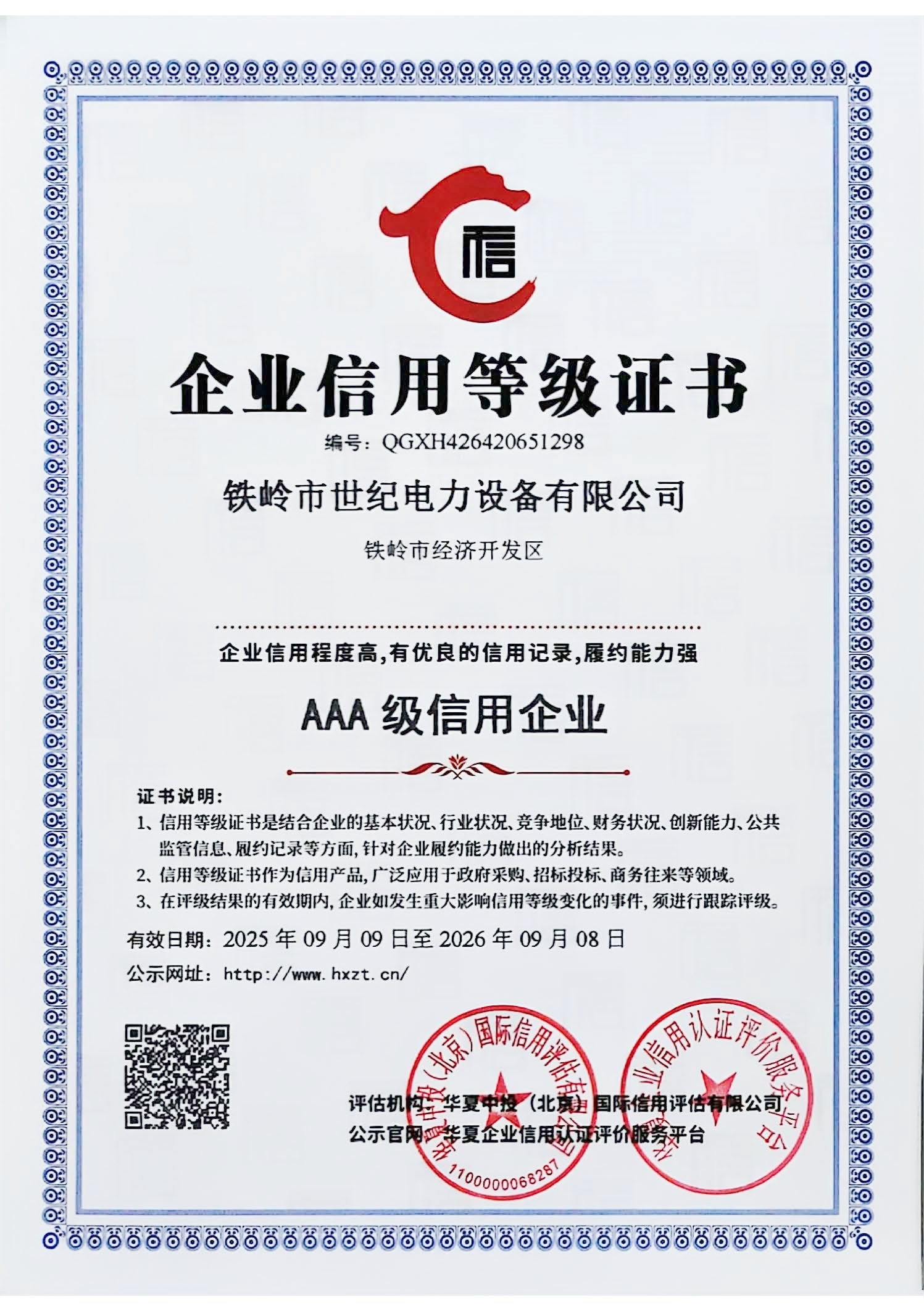 鐵嶺市世紀(jì)電力設(shè)備有限公司是集科研開發(fā)、生產(chǎn)制造、用戶服務(wù)于一體的國家高新技術(shù)企業(yè),始建于1999年,位于鐵嶺經(jīng)濟(jì)開發(fā)區(qū),占地面積5萬余平方米,建筑面積2萬余平方米。主要從事國家電網(wǎng)配套戶外高低壓隔離開關(guān)、電力電纜、變壓器成套裝置、高低壓開關(guān)柜、箱式變電站、絕緣子等產(chǎn)品的研發(fā)、生產(chǎn)和銷售。公司現(xiàn)有國家發(fā)明專利6項、實用新型專利9項,公司通過了ISO9001國際質(zhì)量管理體系認(rèn)證、ISO14001環(huán)境管理體系認(rèn)證和ISO 45001職業(yè)健康安全體系認(rèn)證。